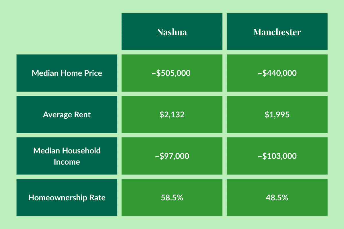 Choosing between Nashua and Manchester, New Hampshire can feel like a tough decision and for good reason. These two southern NH cities each offer distinct benefits, from affordability and amenities to schools and proximity to Boston. Whether you're relocating for work, looking for a fresh start, or buying your first home, understanding the key differences between Nashua and Manchester can help you decide which city better suits your lifestyle.
